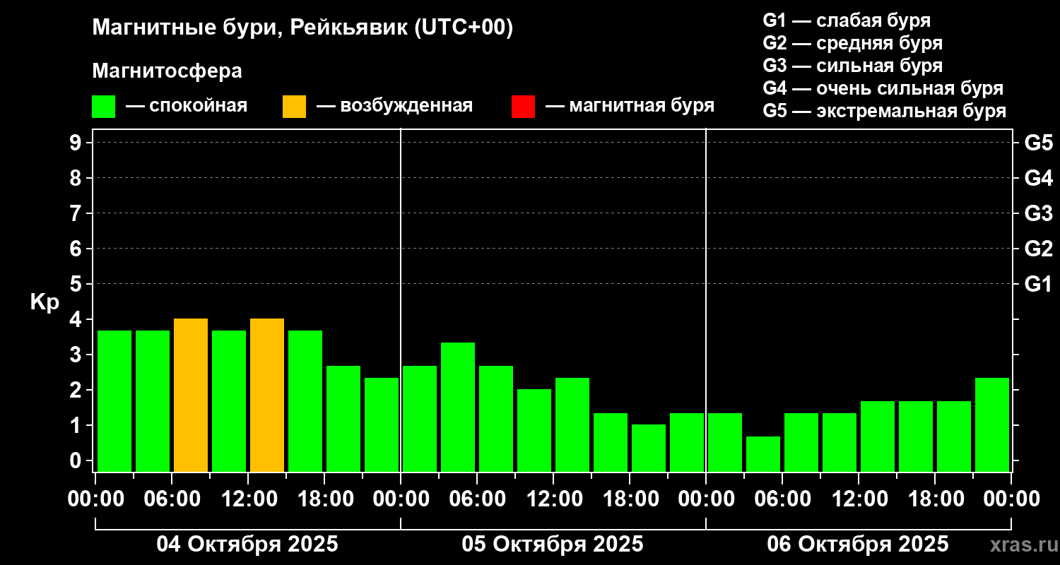 Магнитные бури в Рейкьявике — 6 октября 2025 года