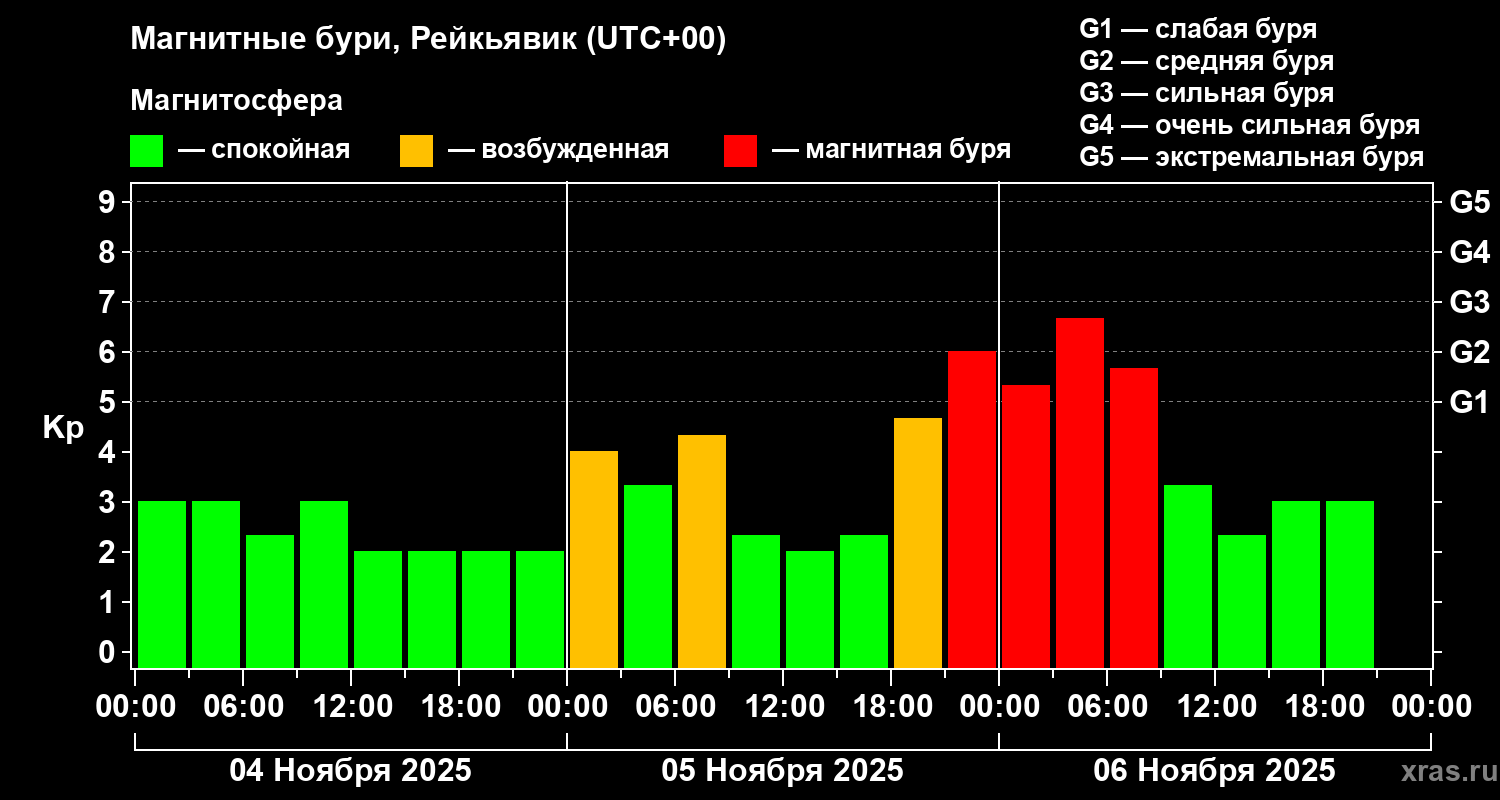 Магнитные бури в Рейкьявике 6 ноября 2025 года