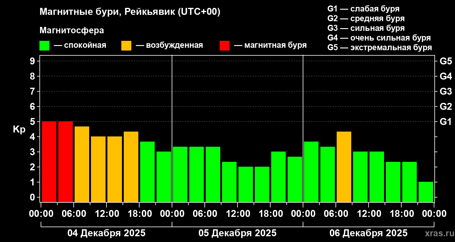 Магнитные бури в Рейкьявике 6 декабря 2025 года