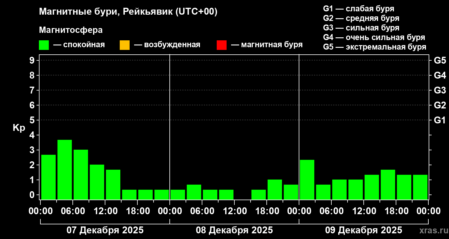 Магнитные бури в Рейкьявике 9 декабря 2025 года