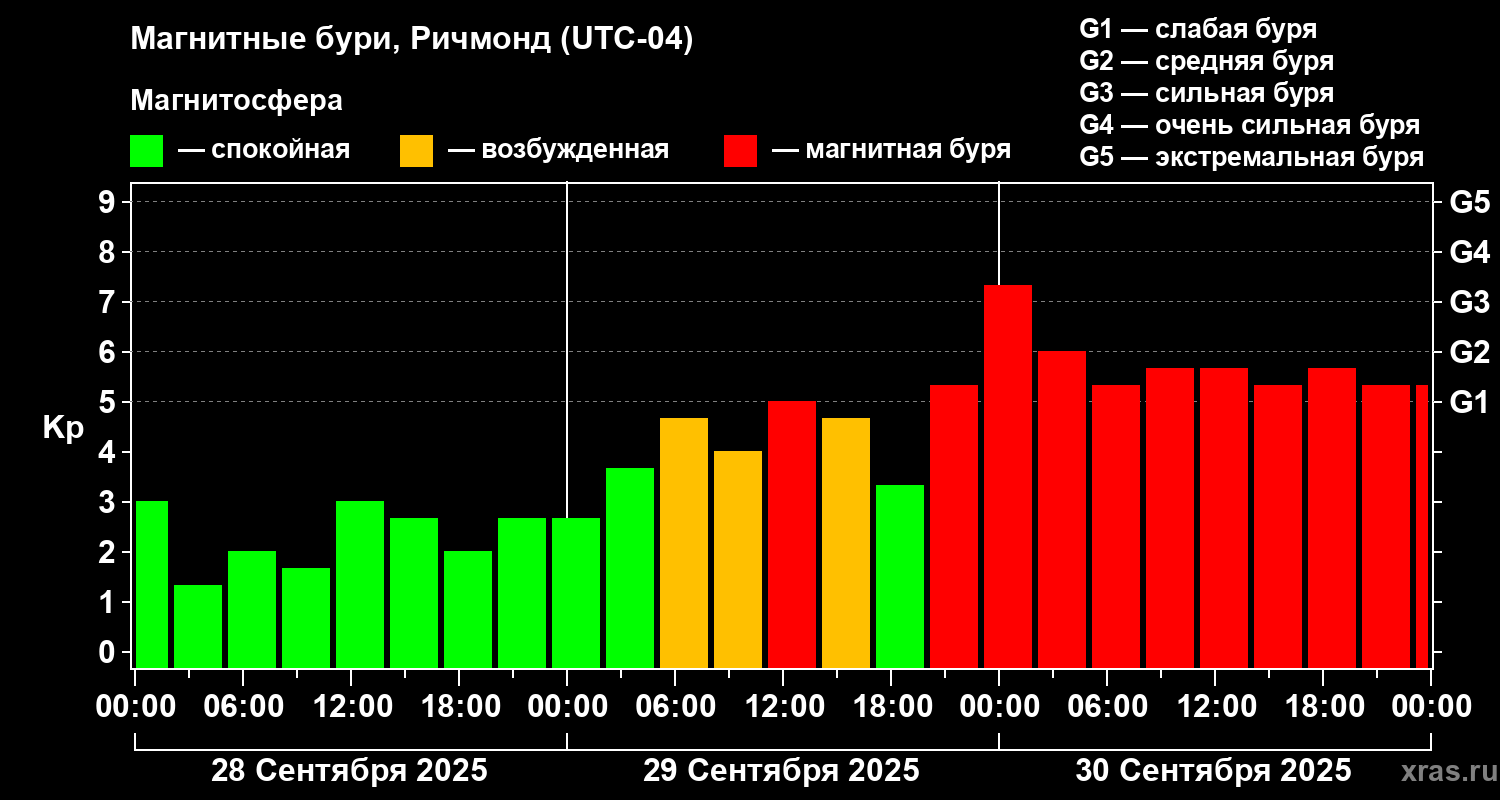 Магнитные бури в Ричмонде 30 сентября 2025 года