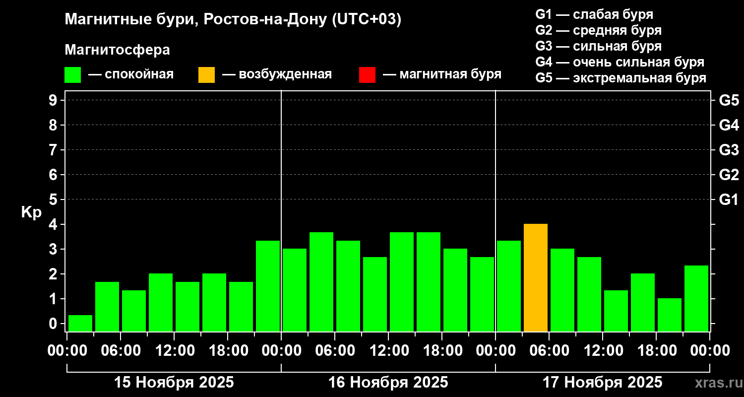 Магнитные бури Ростове-на-Дону — 17 ноября 2025 года