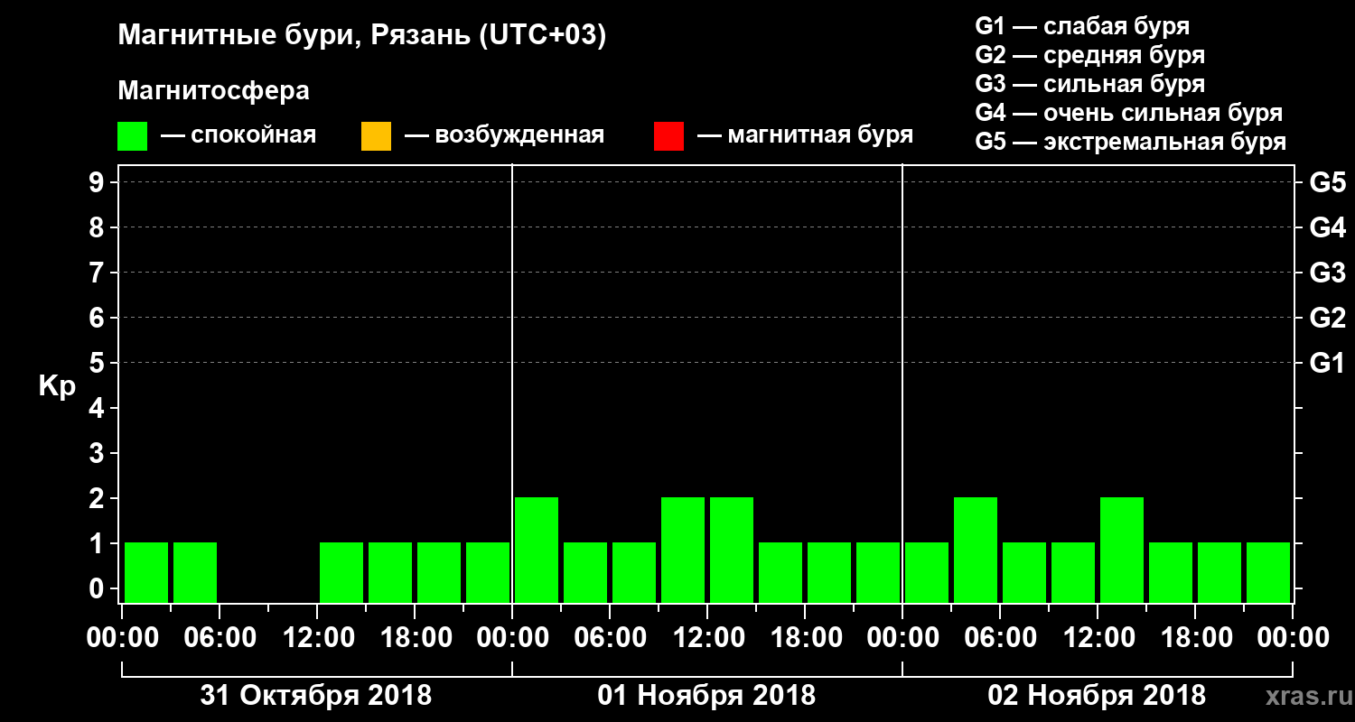 Изменения геомагнитного индекса Kp с 31 октября по 2 ноября 2018 года для средних широт