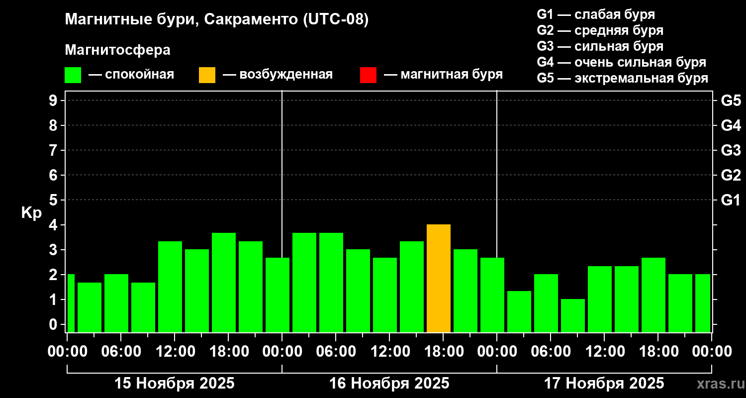 Магнитные бури Сакраменто 17 ноября 2025 года