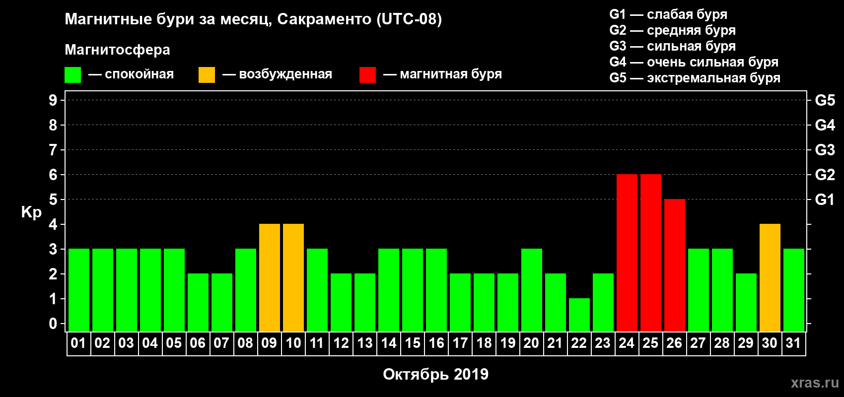Магнитные бури Сакраменто в октябре 2019 года