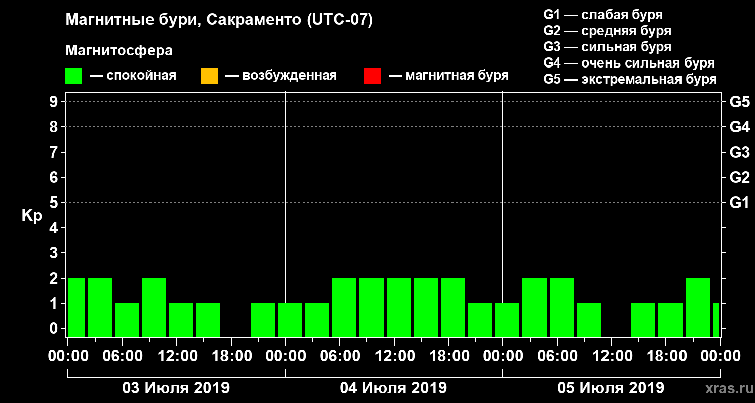 Магнитные бури Сакраменто 5 июля 2019 года
