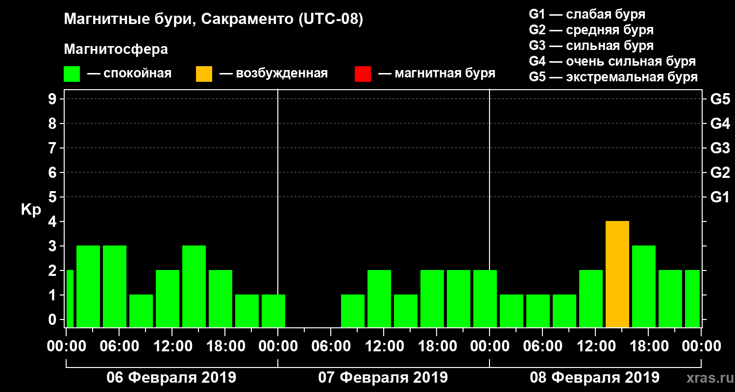 Магнитные бури Сакраменто 8 февраля 2019 года