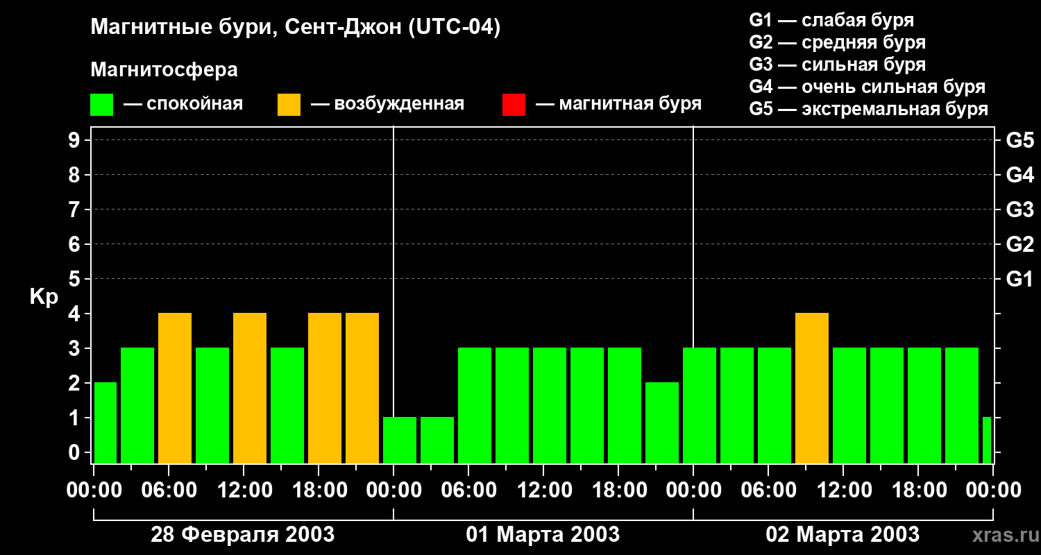 Магнитные бури в Сент-Джоне — 2 марта 2003 года