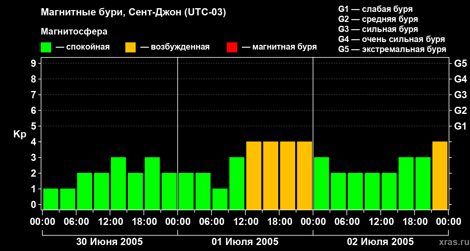 Магнитные бури в Сент-Джоне 2 июля 2005 года