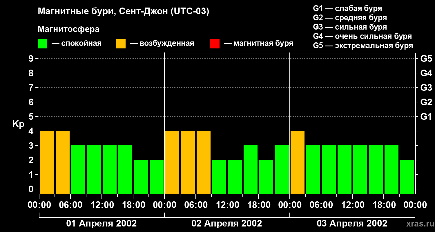 Магнитные бури в Сент-Джоне — 3 апреля 2002 года