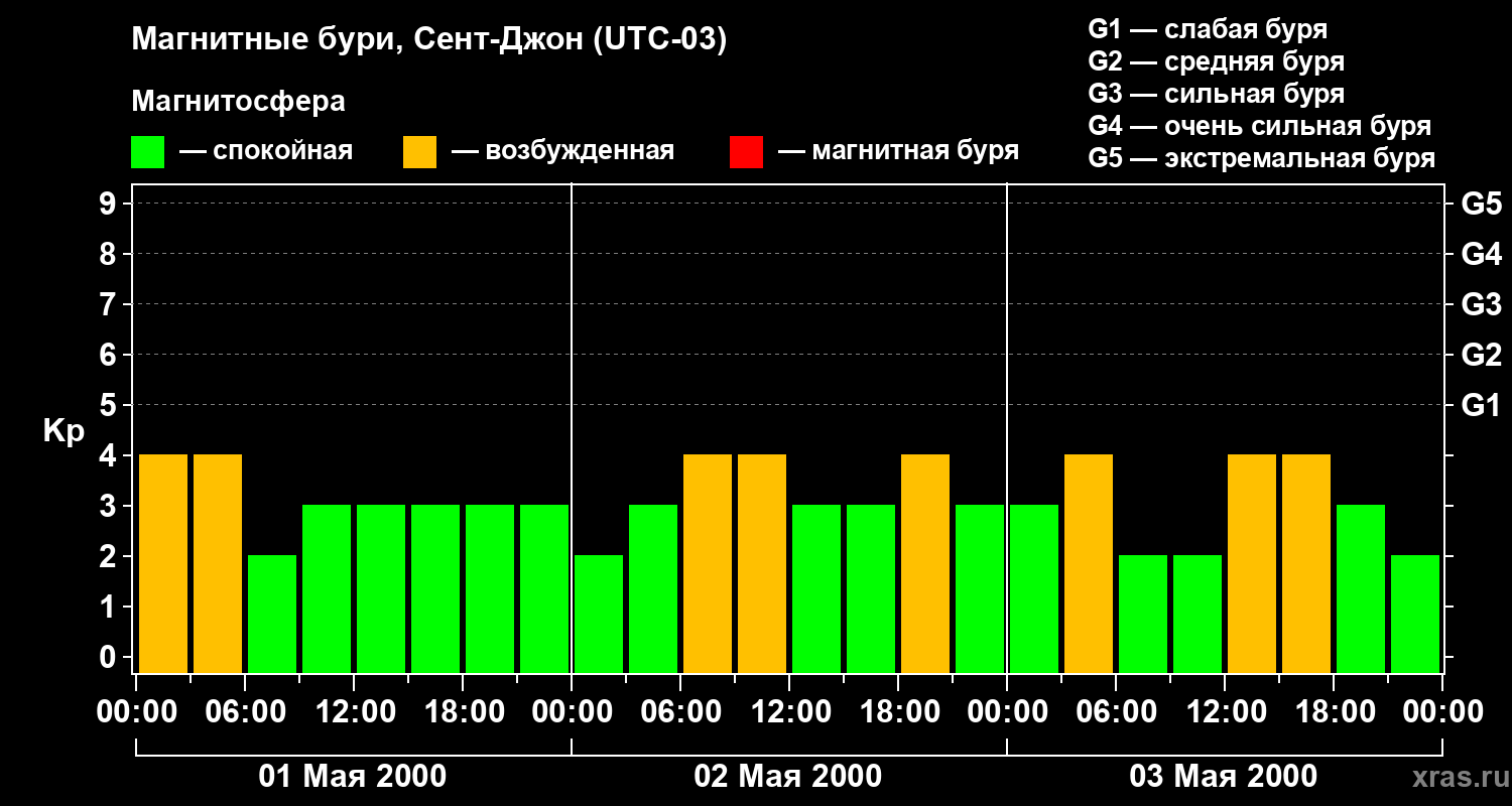Магнитные бури в Сент-Джоне 3 мая 2000 года