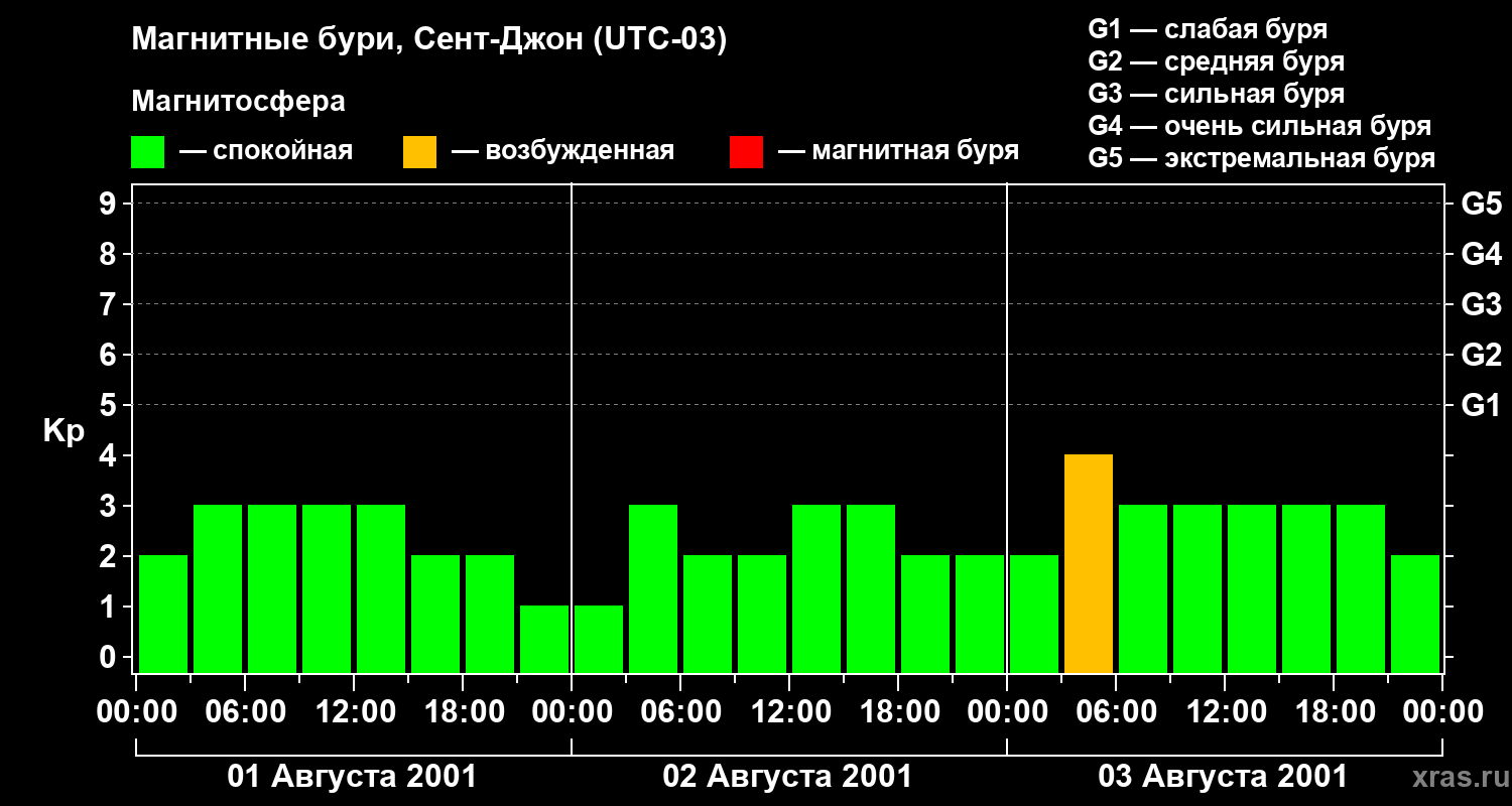 Магнитные бури в Сент-Джоне 3 августа 2001 года