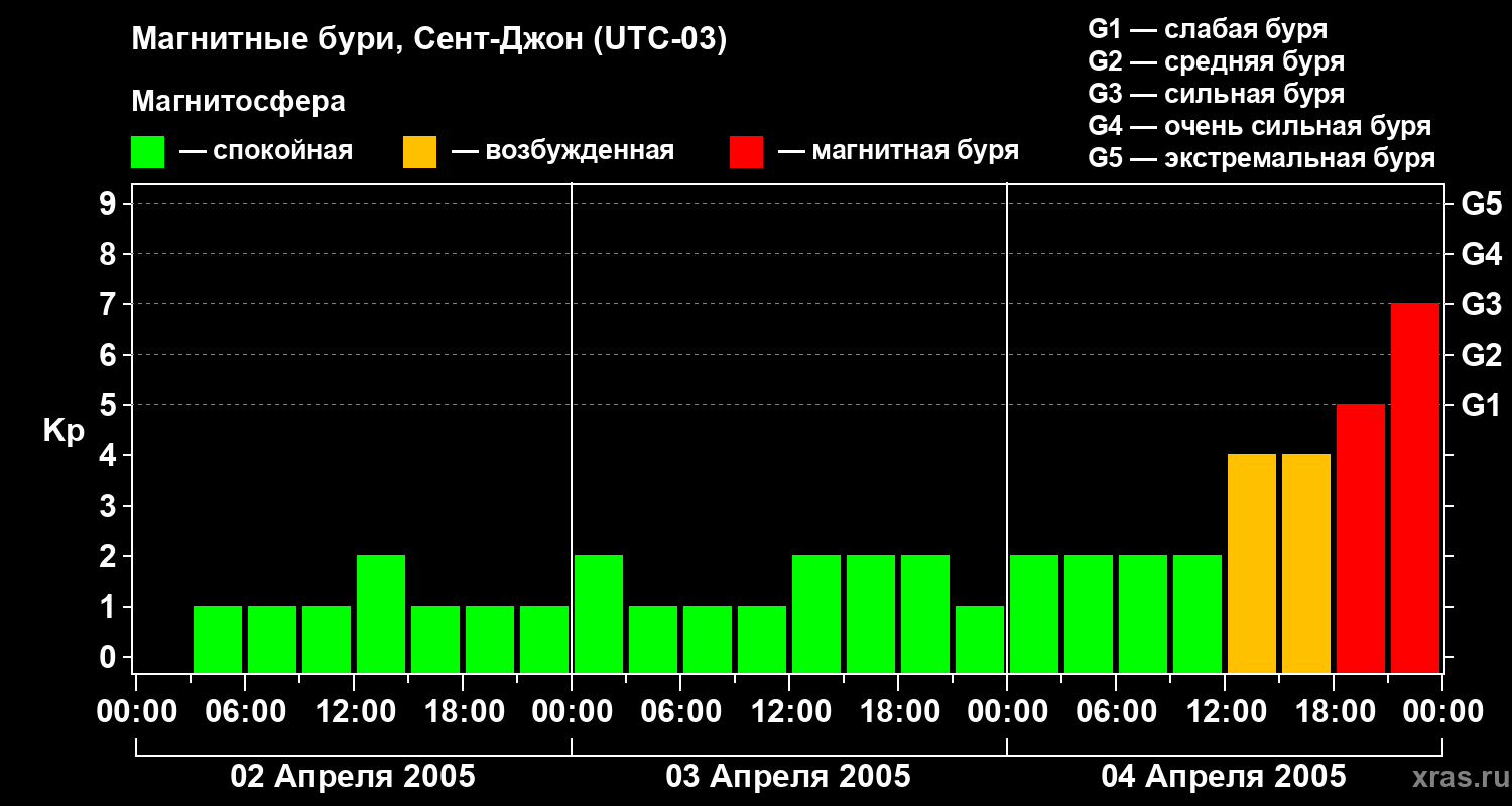 Магнитные бури в Сент-Джоне 4 апреля 2005 года