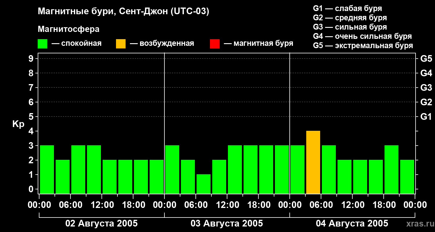 Магнитные бури в Сент-Джоне 4 августа 2005 года