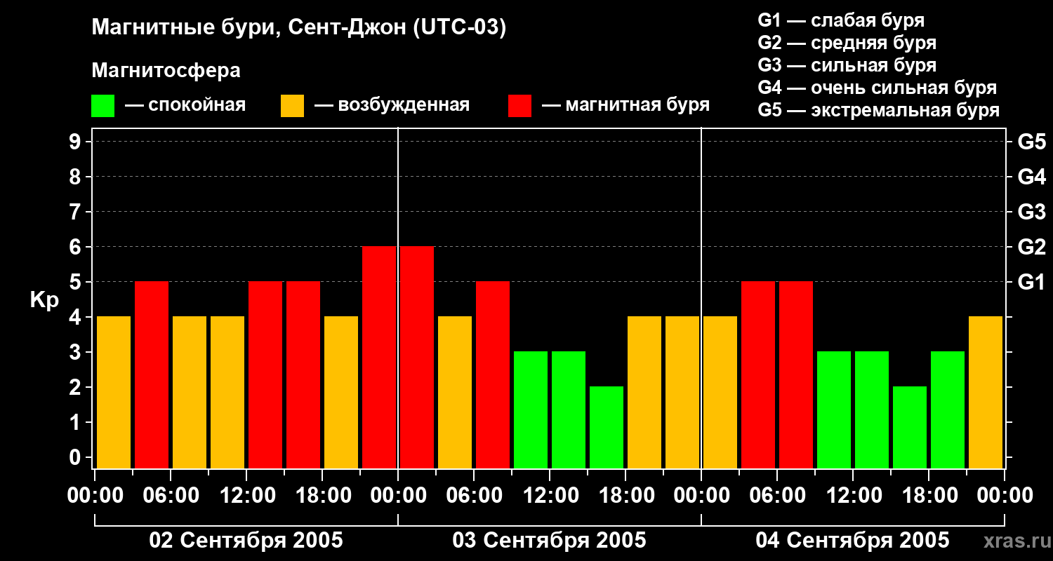 Магнитные бури в Сент-Джоне 4 сентября 2005 года