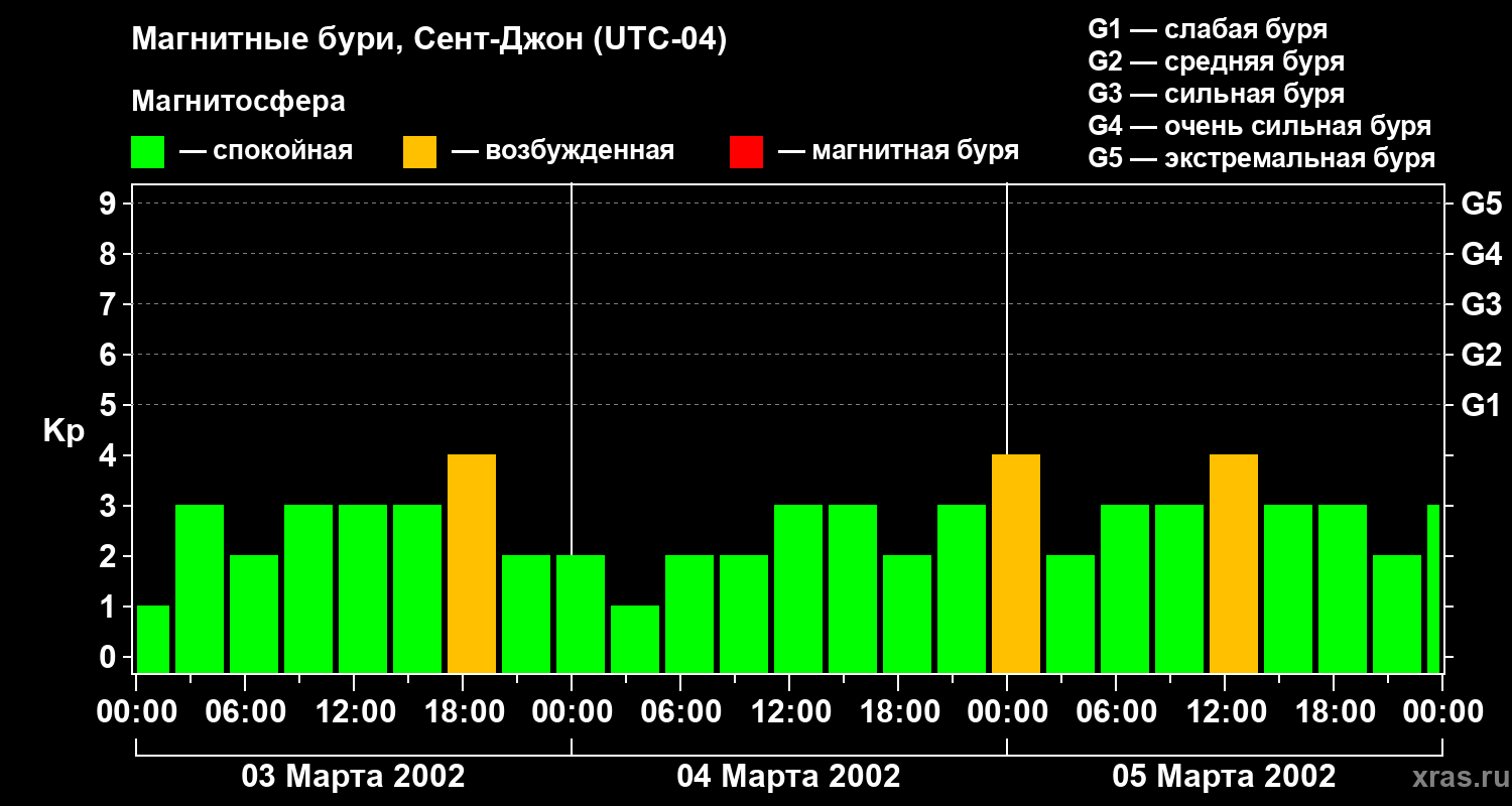 Магнитные бури в Сент-Джоне 5 марта 2002 года