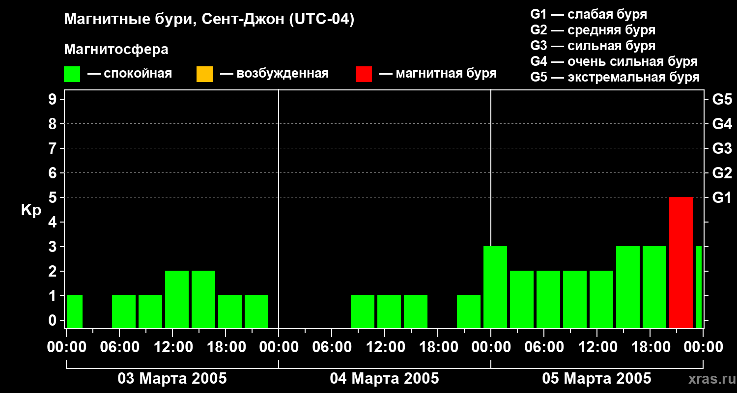 Магнитные бури в Сент-Джоне 5 марта 2005 года