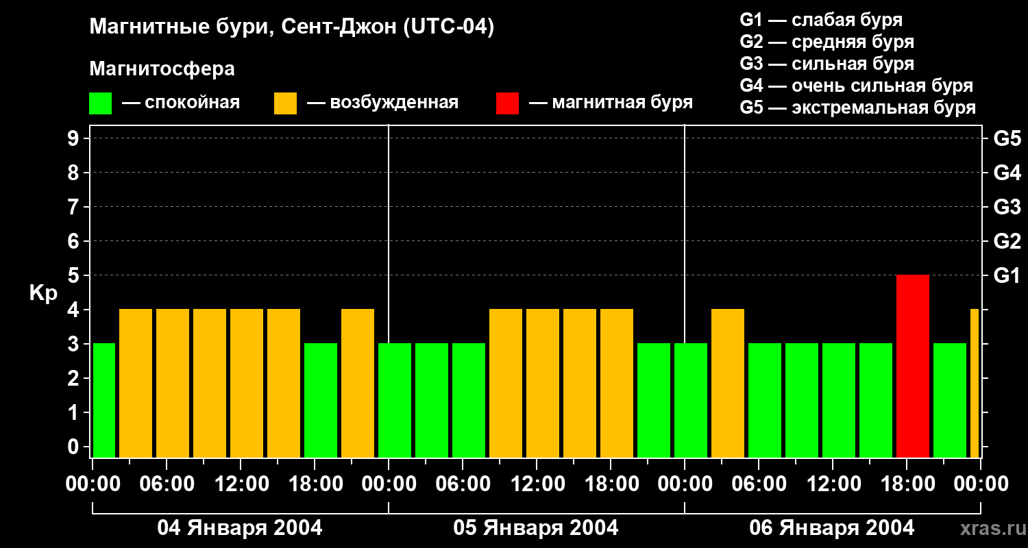Магнитные бури в Сент-Джоне 6 января 2004 года
