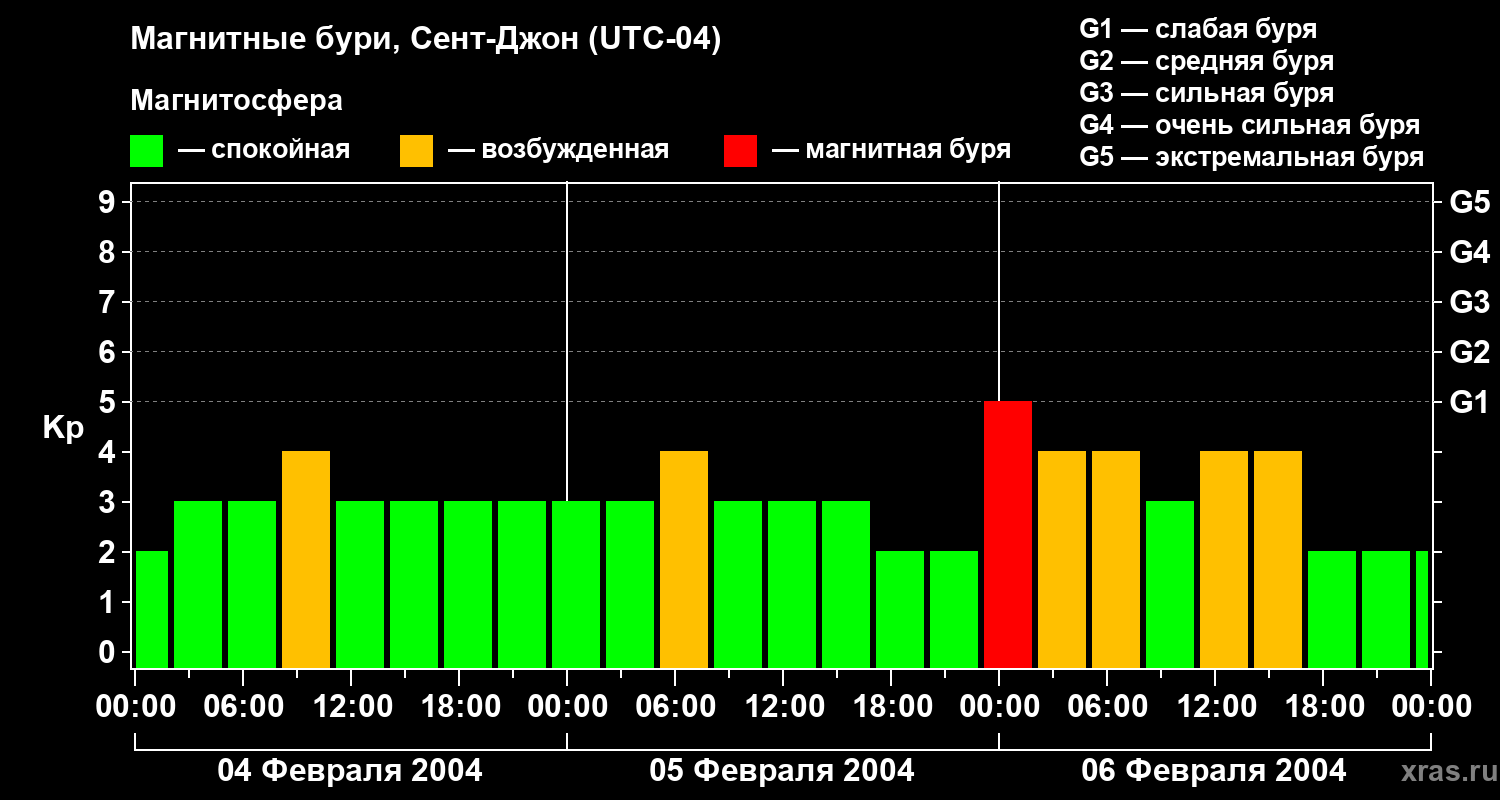 Магнитные бури в Сент-Джоне 6 февраля 2004 года