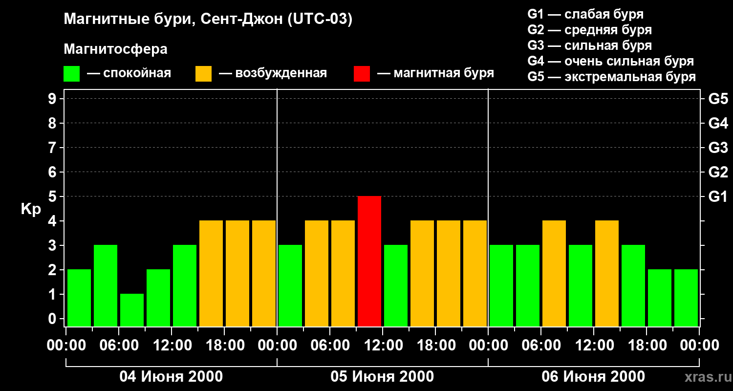 Магнитные бури в Сент-Джоне — 6 июня 2000 года