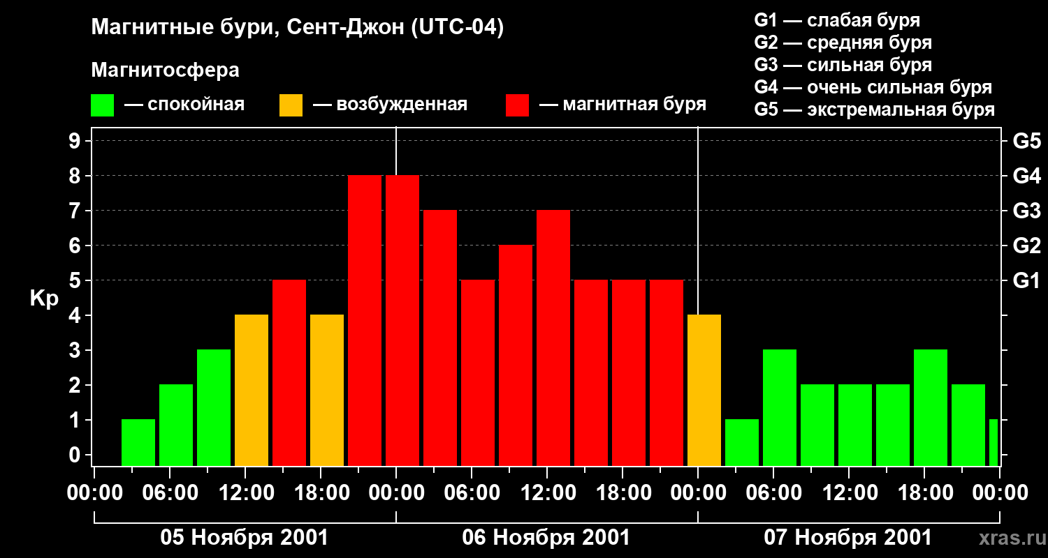 Магнитные бури в Сент-Джоне — 7 ноября 2001 года