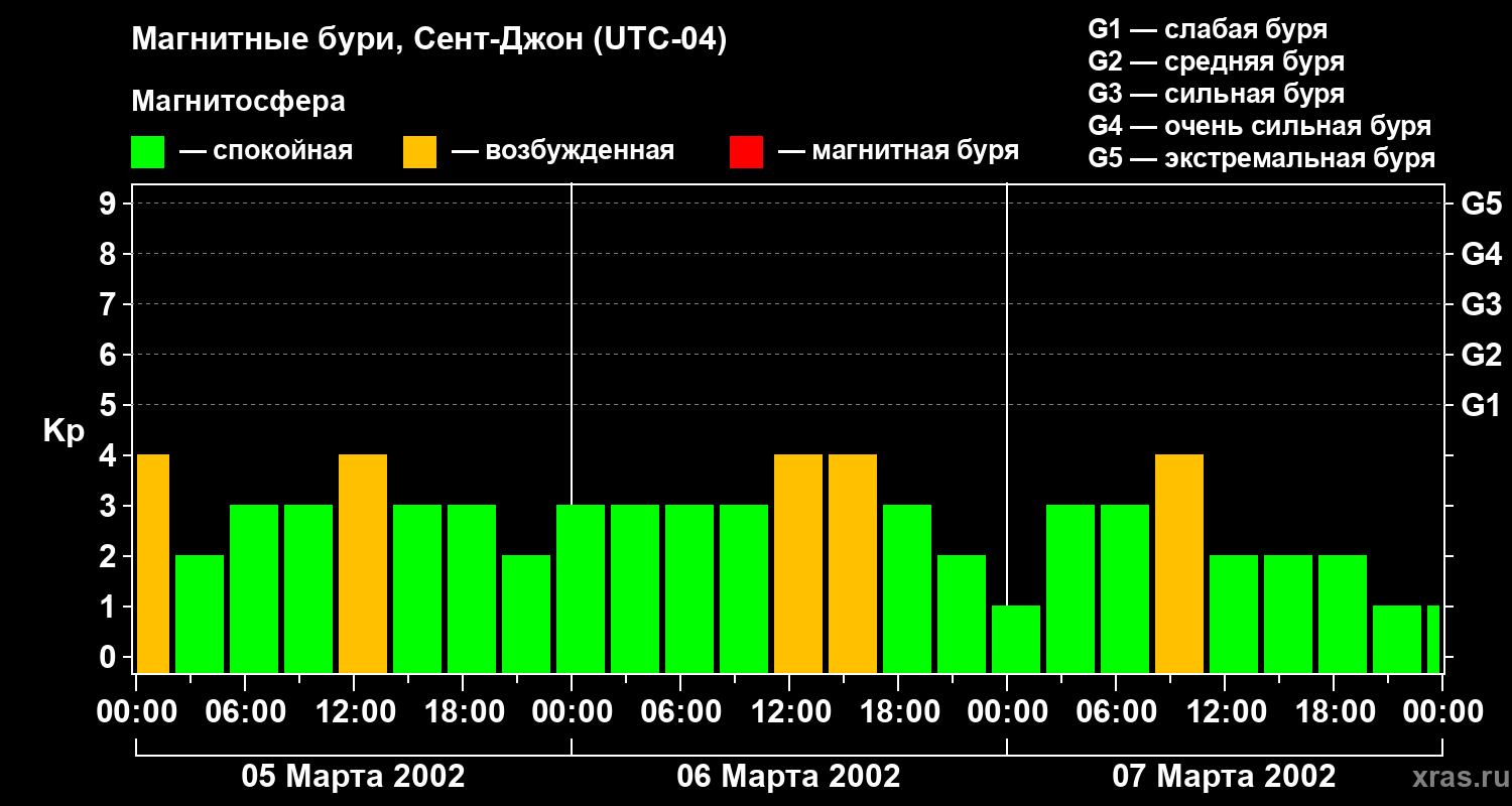 Магнитные бури в Сент-Джоне — 7 марта 2002 года