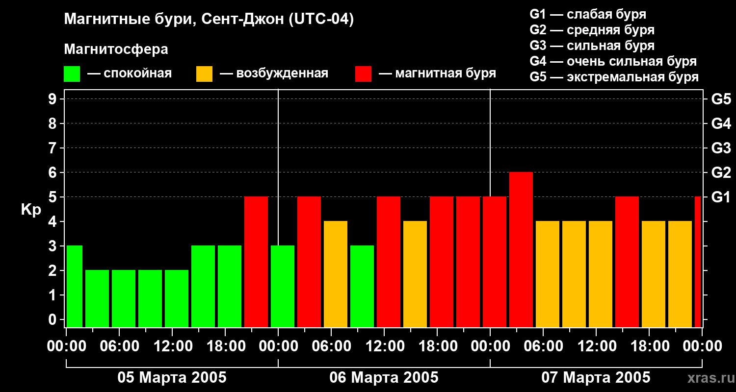 Магнитные бури в Сент-Джоне — 7 марта 2005 года