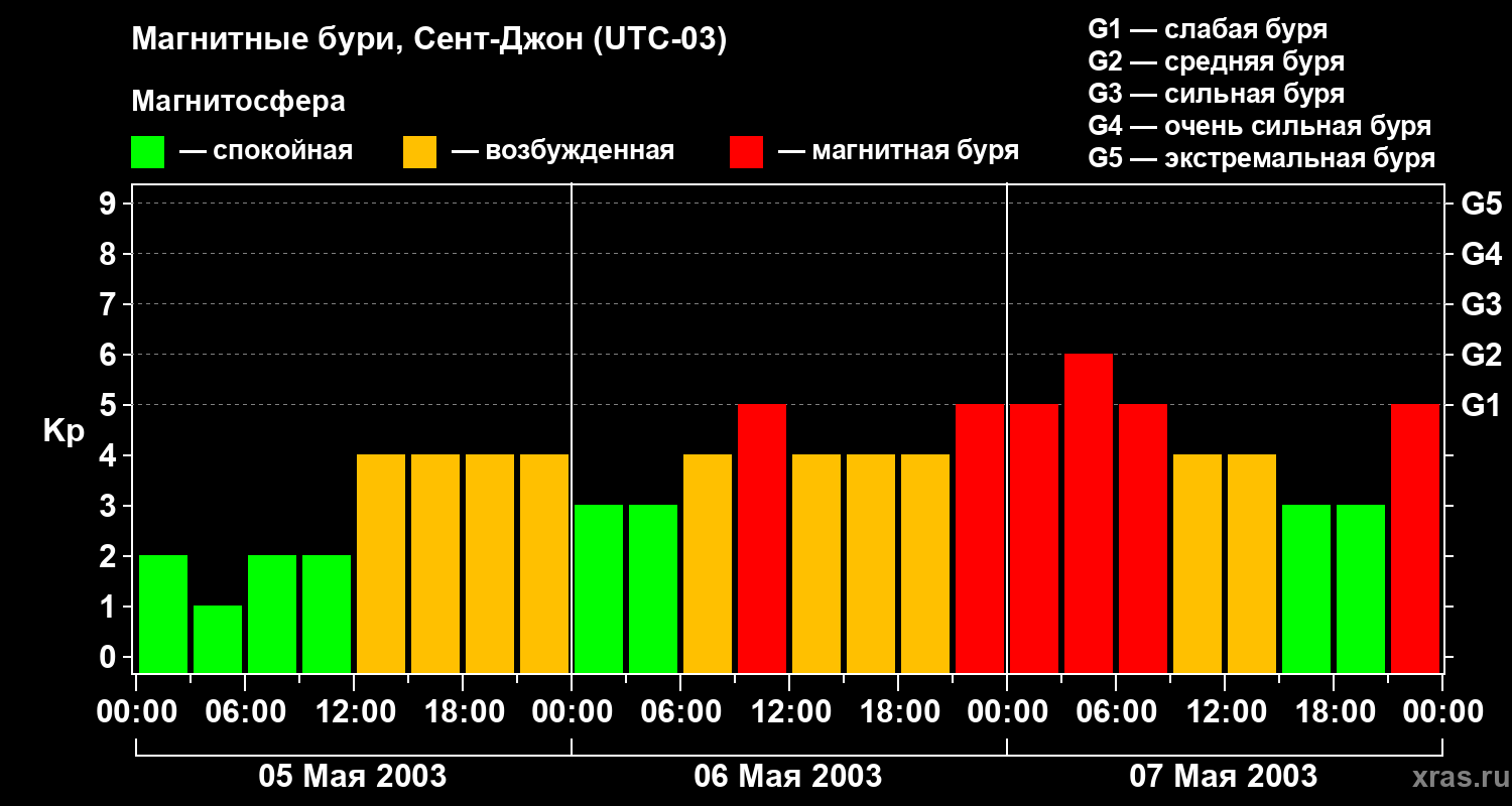 Магнитные бури в Сент-Джоне в мае 2003 года