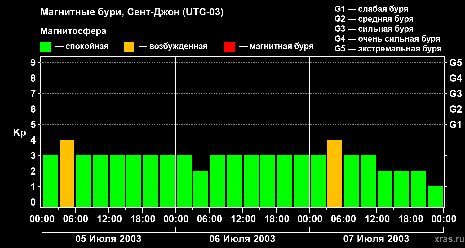 Магнитные бури в Сент-Джоне — 7 июля 2003 года
