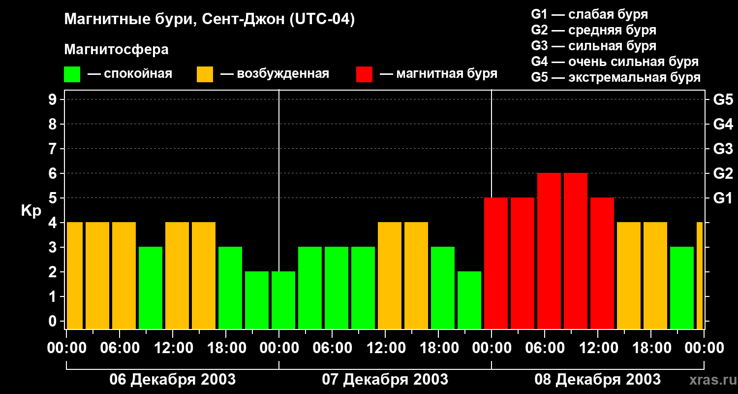 Магнитные бури в Сент-Джоне — 8 декабря 2003 года