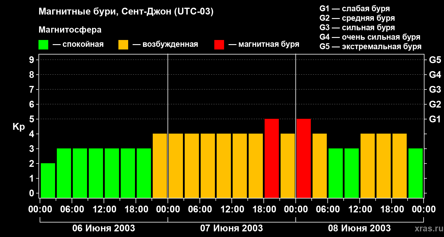 Магнитные бури в Сент-Джоне — 8 июня 2003 года