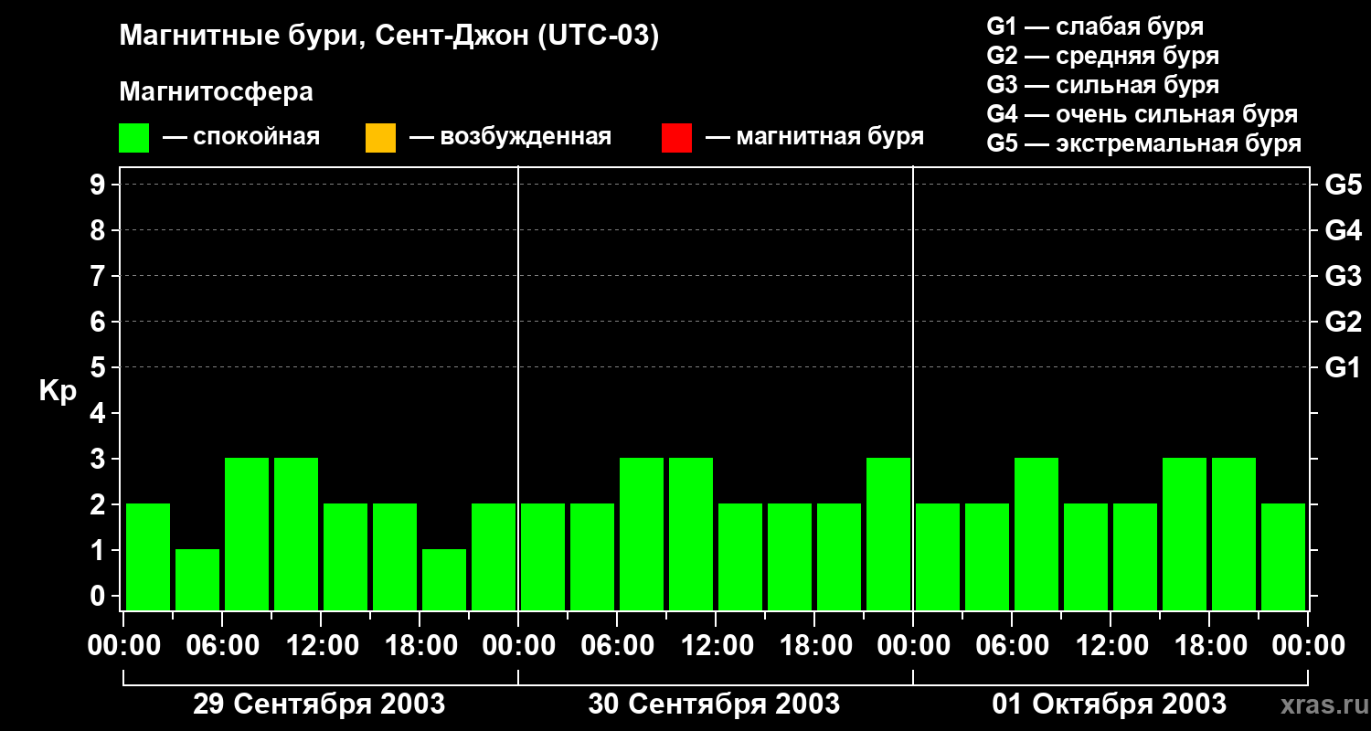 Магнитные бури в Сент-Джоне — 1 октября 2003 года