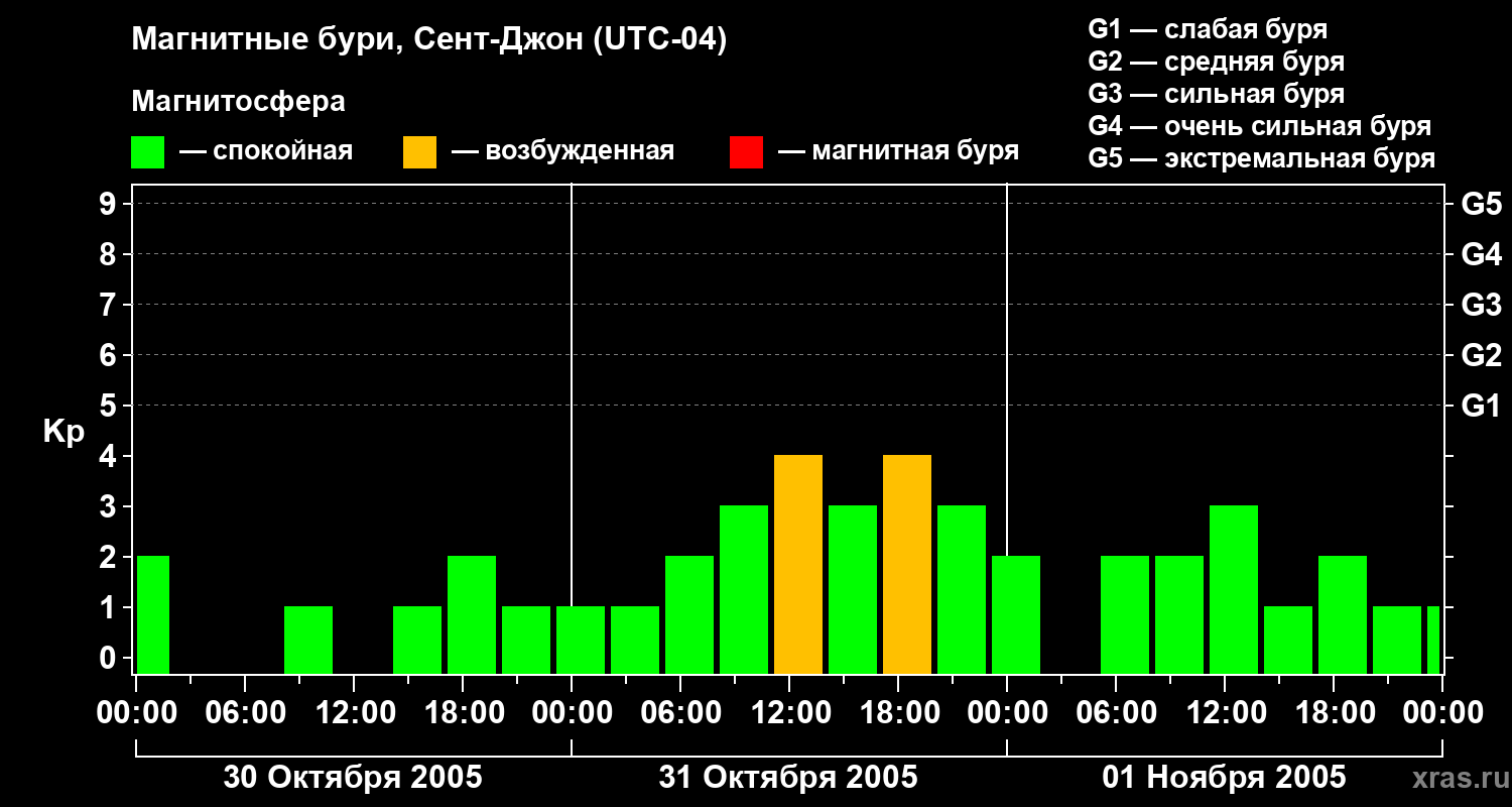 Магнитные бури в Сент-Джоне 1 ноября 2005 года