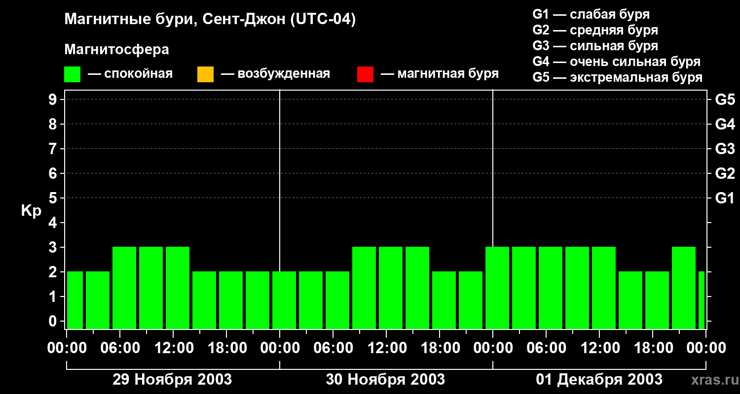 Магнитные бури в Сент-Джоне — 1 декабря 2003 года