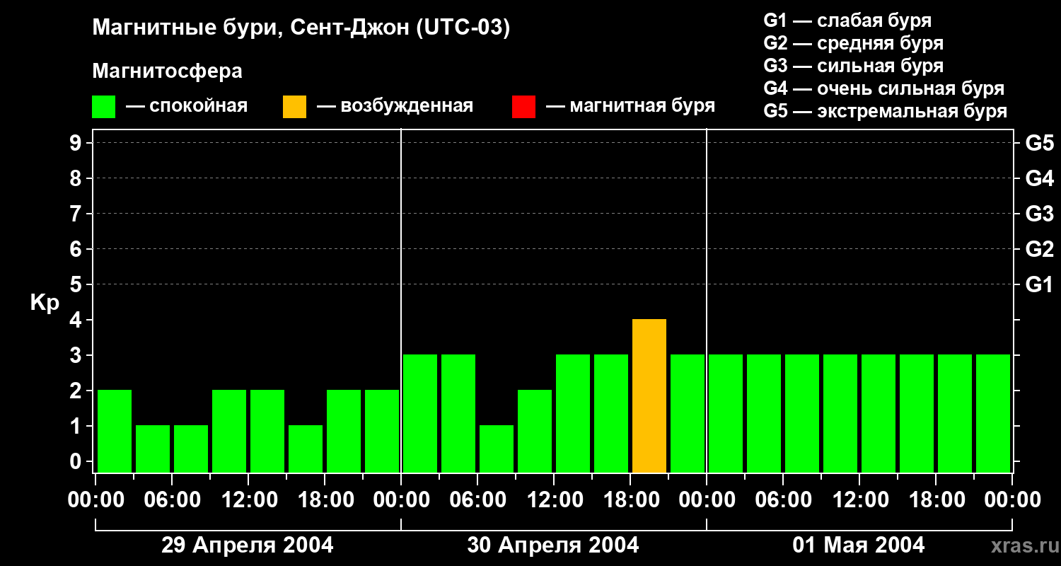 Магнитные бури в Сент-Джоне — 1 мая 2004 года