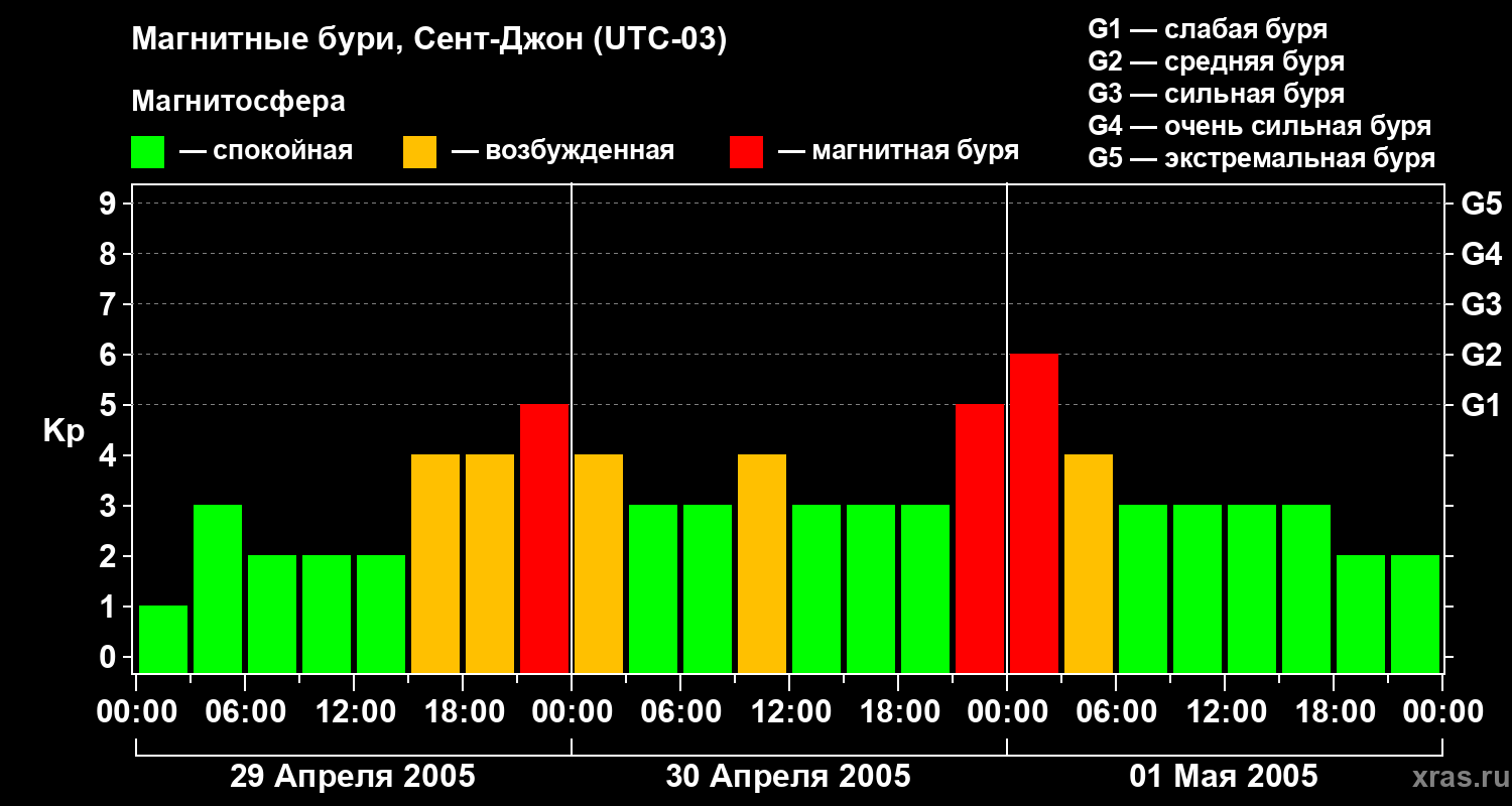 Магнитные бури в Сент-Джоне — 1 мая 2005 года