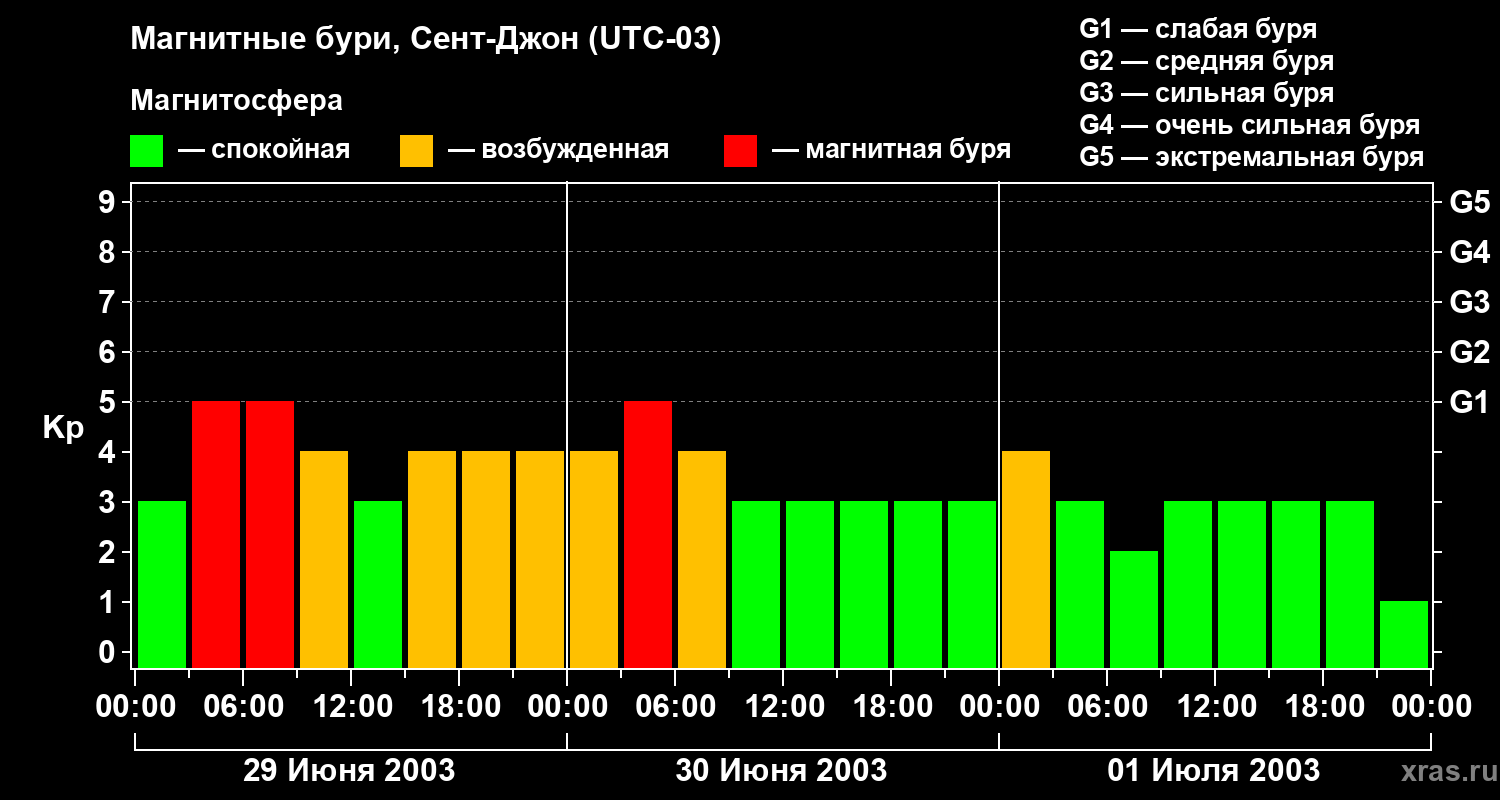 Магнитные бури в Сент-Джоне — 1 июля 2003 года