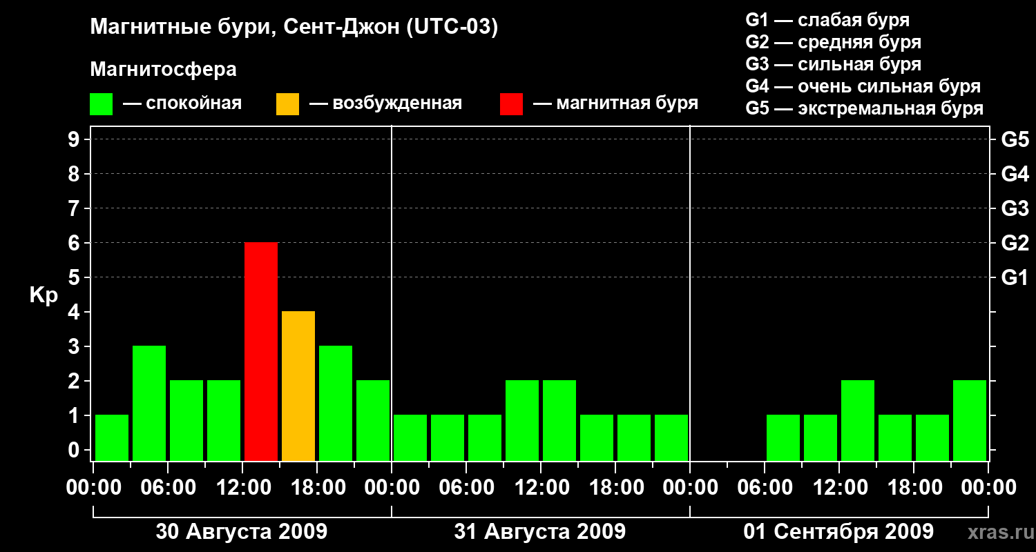 Магнитные бури в Сент-Джоне — 1 сентября 2009 года