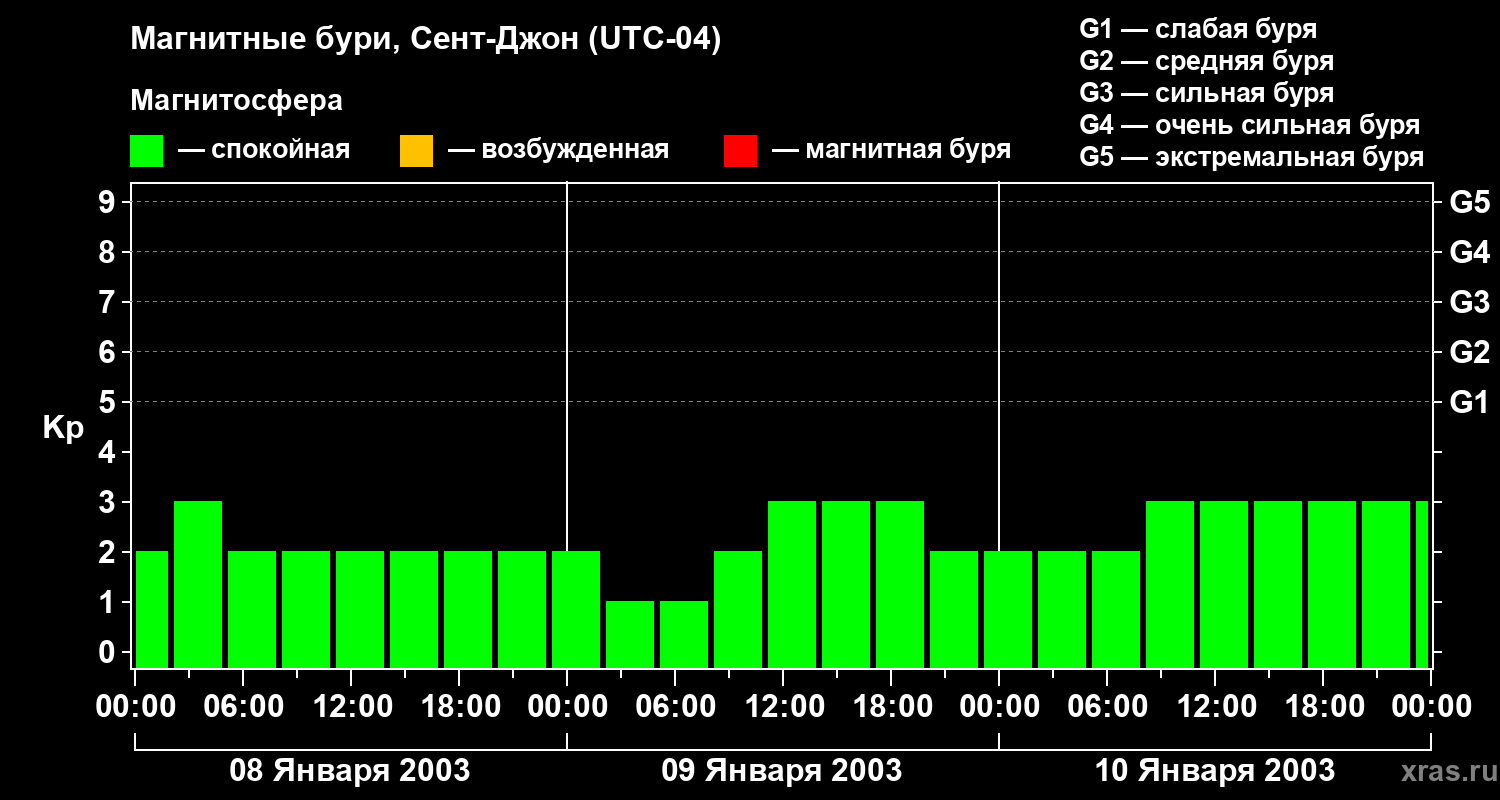 Магнитные бури в Сент-Джоне 10 января 2003 года