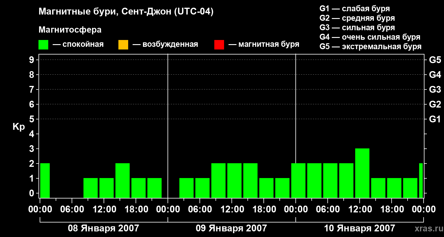 Магнитные бури в Сент-Джоне 10 января 2007 года
