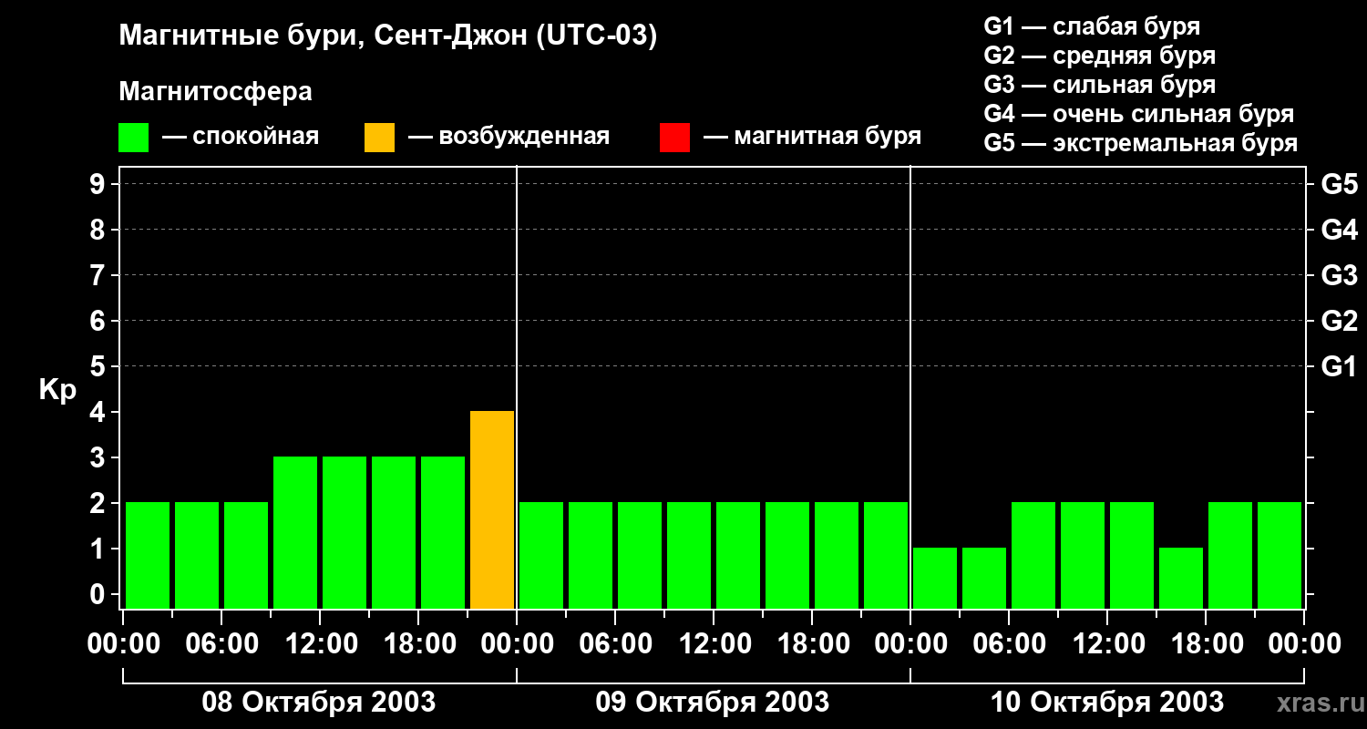 Магнитные бури в Сент-Джоне — 10 октября 2003 года