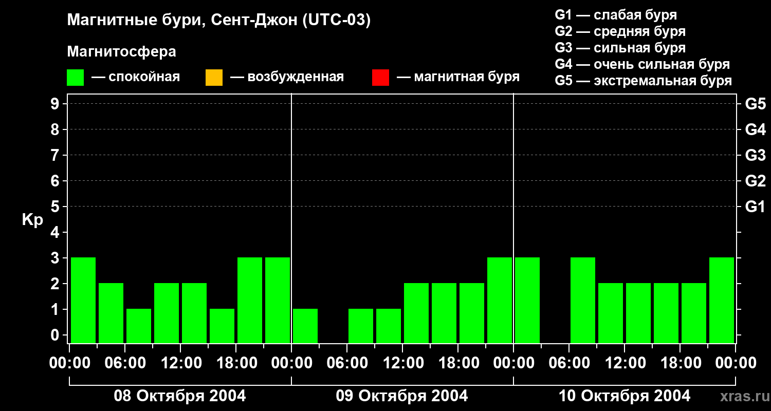 Магнитные бури в Сент-Джоне 10 октября 2004 года
