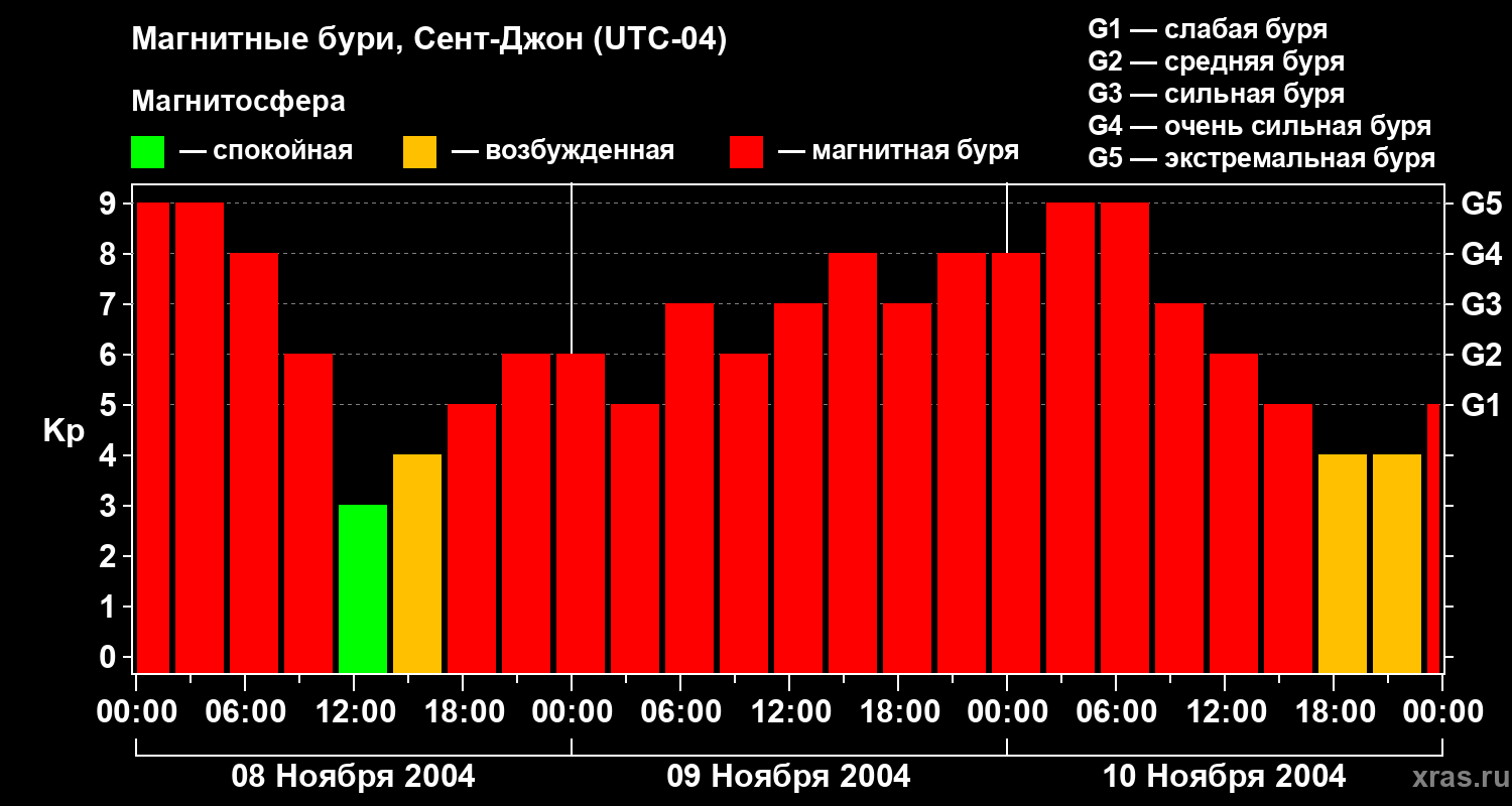 Магнитные бури в Сент-Джоне 10 ноября 2004 года