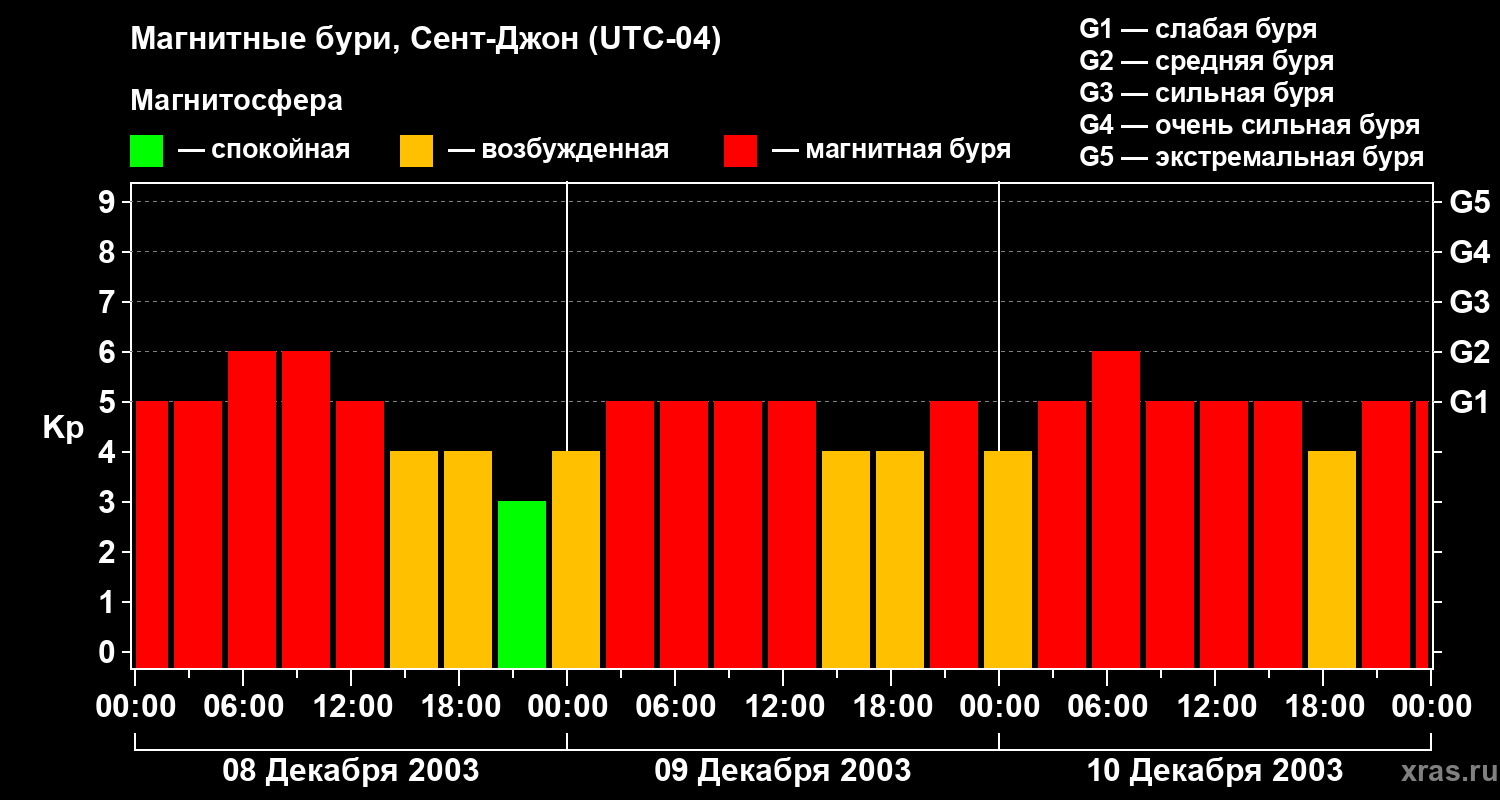 Магнитные бури в Сент-Джоне — 10 декабря 2003 года