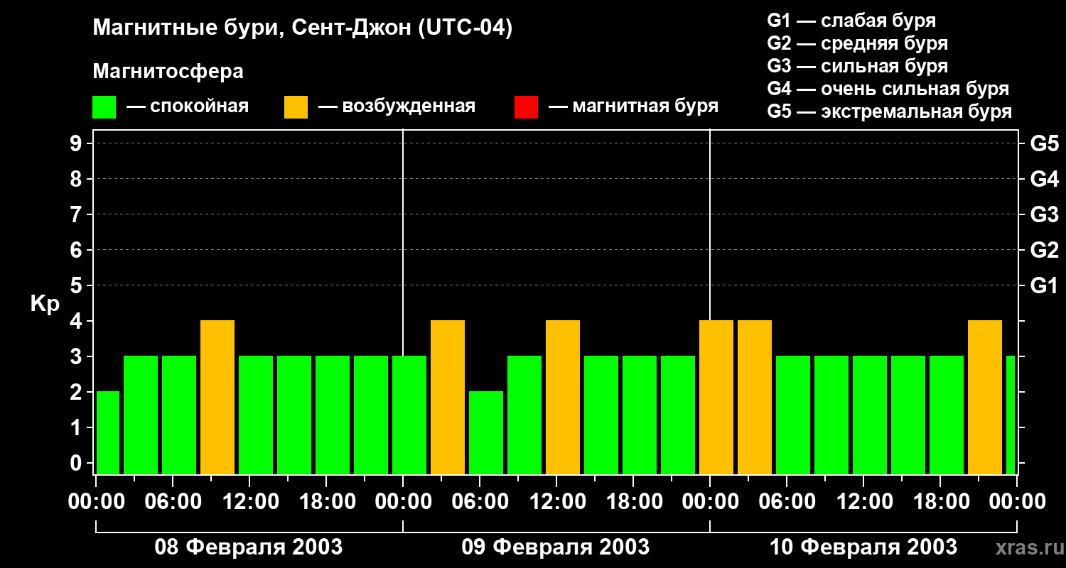 Магнитные бури в Сент-Джоне — 10 февраля 2003 года