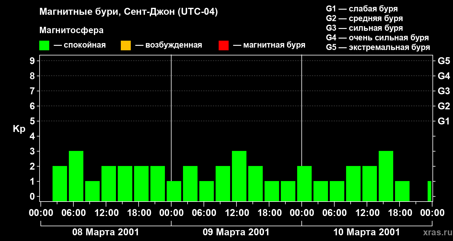 Магнитные бури в Сент-Джоне — 10 марта 2001 года