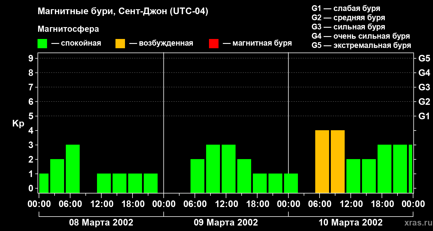 Магнитные бури в Сент-Джоне 10 марта 2002 года