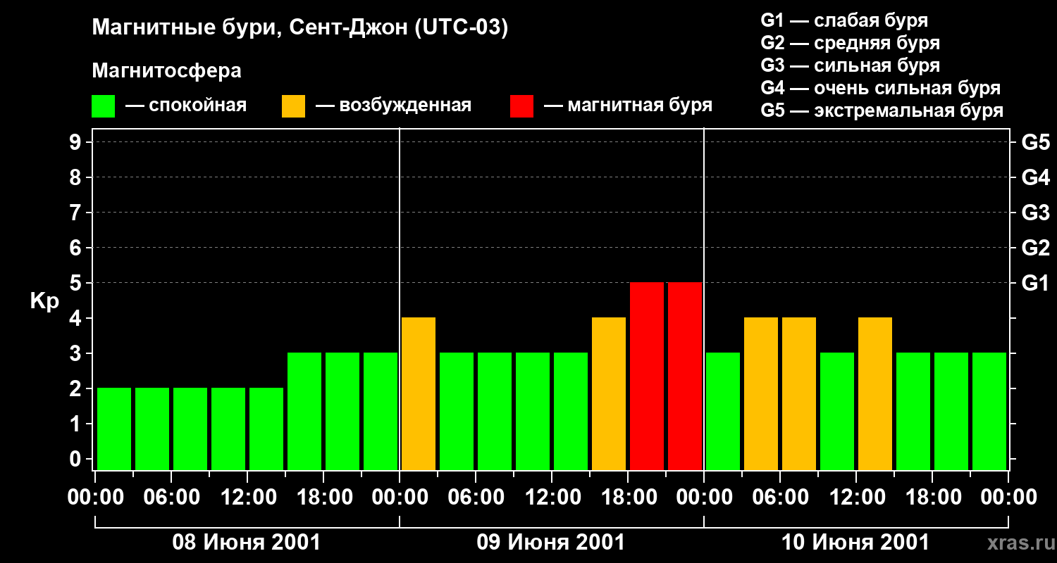 Магнитные бури в Сент-Джоне в июне 2001 года