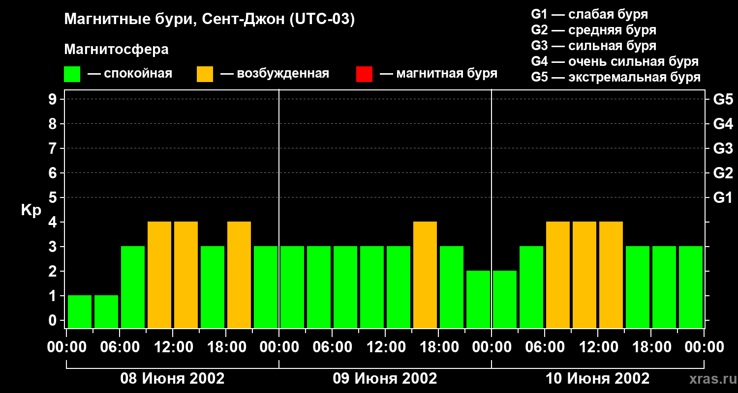 Магнитные бури в Сент-Джоне 10 июня 2002 года