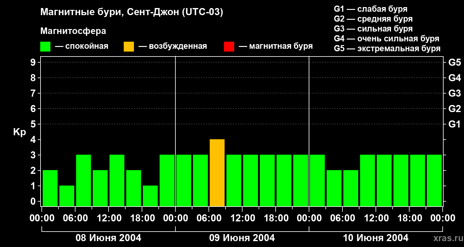 Магнитные бури в Сент-Джоне 10 июня 2004 года